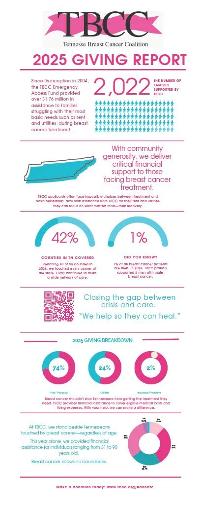 In 2002 TBCC established the Emergency Access Fund to provide financial assistance to individuals in financial need due to inability to work and or mounting medical expenses incurred while undergoing treatment of breast cancer. This fund is designed to partner with other established community agencies to provide quick turn-around funding. This fund has provided assistance in preventing evictions, paying utilities, insurance and medical necessities.
